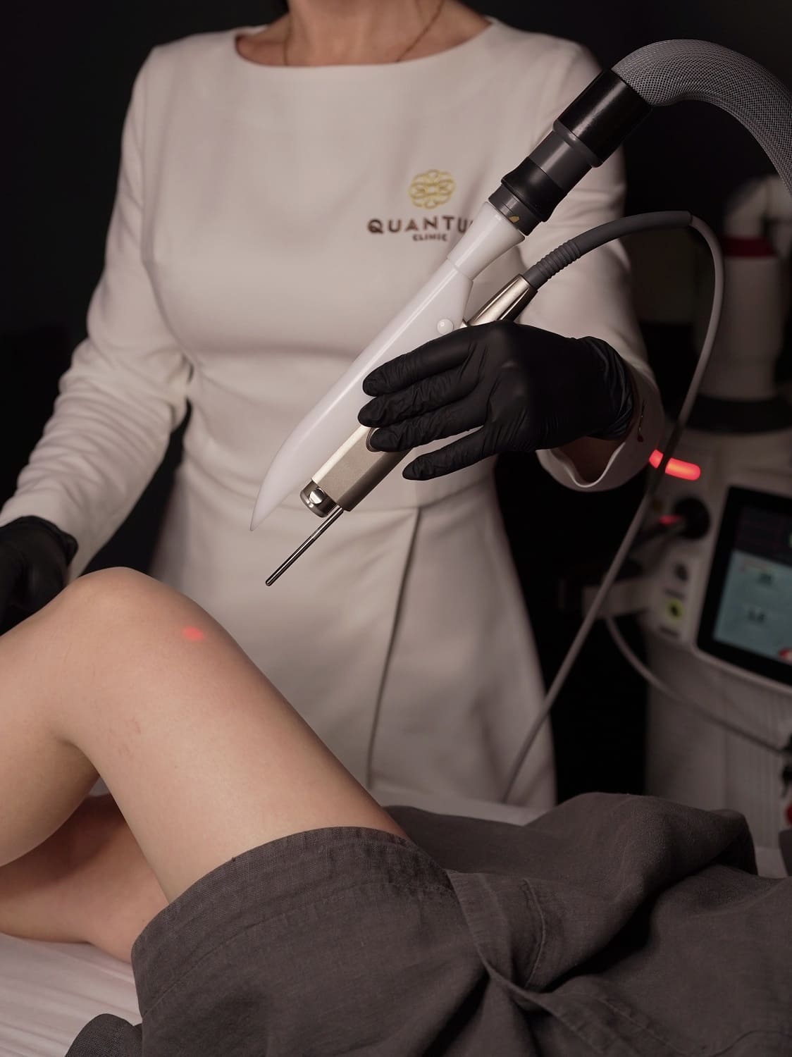 Перед началом процедуры врач очищает кожу и оценивает ее состояние, после чего индивидуально настраивает параметры аппарата Fotona с учетом зоны обработки и типа волос.